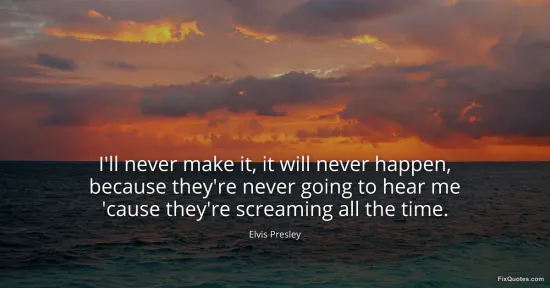Presley, Elvis. (2026, January 18). I'll never make it, it will never happen, because they're never going to hear me 'cause they're screaming all the time. FixQuotes. https://fixquotes.com/quotes/ill-never-make-it-it-will-never-happen-because-19373/