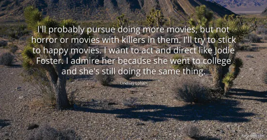 Lohan, Lindsay. (2026, January 16). I'll probably pursue doing more movies, but not horror or movies with killers in them. I'll try to stick to happy movies. I want to act and direct like Jodie Foster. I admire her because she went to college and she's still doing the same thing. FixQuotes. https://fixquotes.com/quotes/ill-probably-pursue-doing-more-movies-but-not-112229/