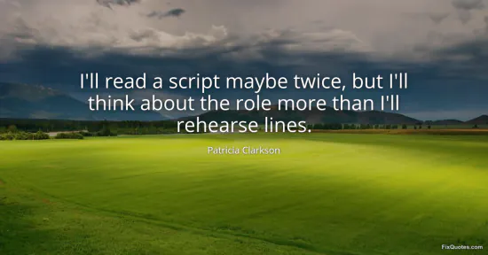Clarkson, Patricia. (2026, January 16). I'll read a script maybe twice, but I'll think about the role more than I'll rehearse lines. FixQuotes. https://fixquotes.com/quotes/ill-read-a-script-maybe-twice-but-ill-think-about-89054/