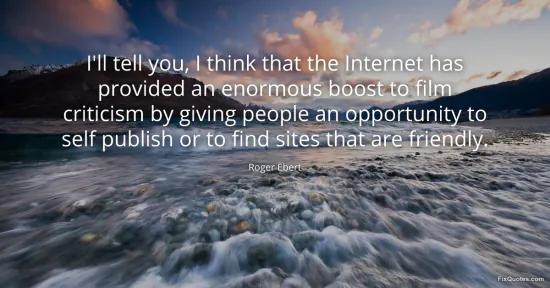 Ebert, Roger. "I'll tell you, I think that the Internet has provided an enormous boost to film criticism by giving people an opportunity to self publish or to find sites that are friendly." FixQuotes. January 17, 2026. https://fixquotes.com/quotes/ill-tell-you-i-think-that-the-internet-has-62925/.