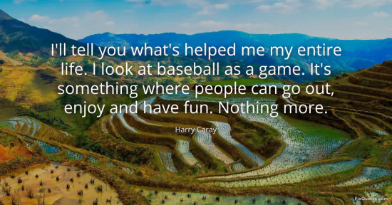 Caray, Harry. "I'll tell you what's helped me my entire life. I look at baseball as a game. It's something where people can go out, enjoy and have fun. Nothing more." FixQuotes. January 17, 2026. https://fixquotes.com/quotes/ill-tell-you-whats-helped-me-my-entire-life-i-61785/.
