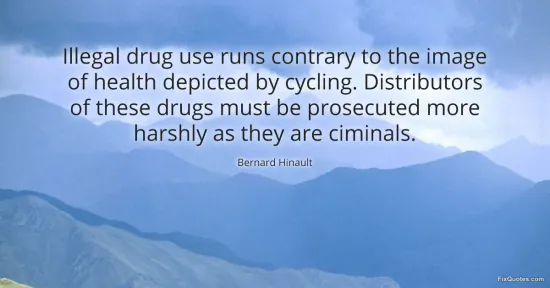 Hinault, Bernard. (2026, January 17). Illegal drug use runs contrary to the image of health depicted by cycling. Distributors of these drugs must be prosecuted more harshly as they are ciminals. FixQuotes. https://fixquotes.com/quotes/illegal-drug-use-runs-contrary-to-the-image-of-61161/