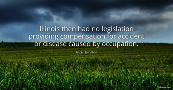 Hamilton, Alice. (2026, January 17). Illinois then had no legislation providing compensation for accident or disease caused by occupation. FixQuotes. https://fixquotes.com/quotes/illinois-then-had-no-legislation-providing-37265/