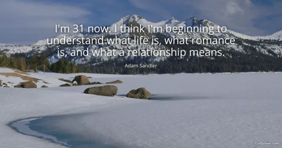Sandler, Adam. (2026, January 16). I'm 31 now. I think I'm beginning to understand what life is, what romance is, and what a relationship means. FixQuotes. https://fixquotes.com/quotes/im-31-now-i-think-im-beginning-to-understand-what-137226/