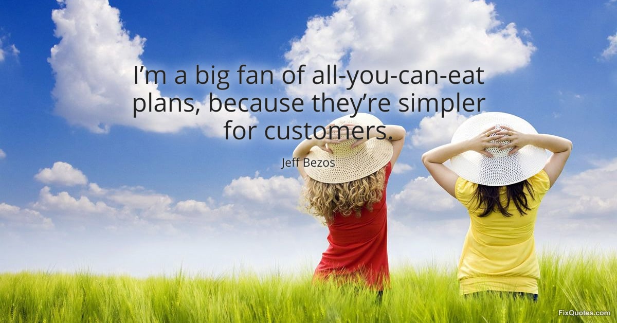 Bezos, Jeff. (2026, March 25). I’m a big fan of all-you-can-eat plans, because they’re simpler for customers. FixQuotes. https://fixquotes.com/quotes/im-a-big-fan-of-all-you-can-eat-plans-because-186472/