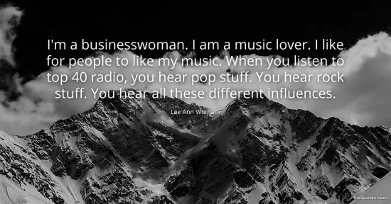 Womack, Lee Ann. "I'm a businesswoman. I am a music lover. I like for people to like my music. When you listen to top 40 radio, you hear pop stuff. You hear rock stuff. You hear all these different influences." FixQuotes. January 15, 2026. https://fixquotes.com/quotes/im-a-businesswoman-i-am-a-music-lover-i-like-for-142711/.