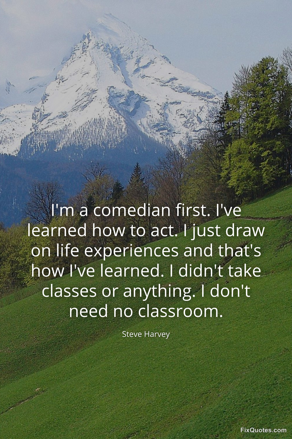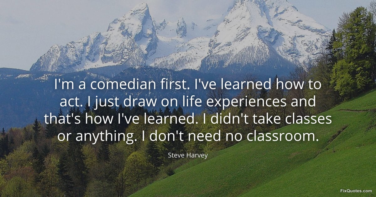 Harvey, Steve. (2026, January 16). I'm a comedian first. I've learned how to act. I just draw on life experiences and that's how I've learned. I didn't take classes or anything. I don't need no classroom. FixQuotes. https://fixquotes.com/quotes/im-a-comedian-first-ive-learned-how-to-act-i-just-88290/