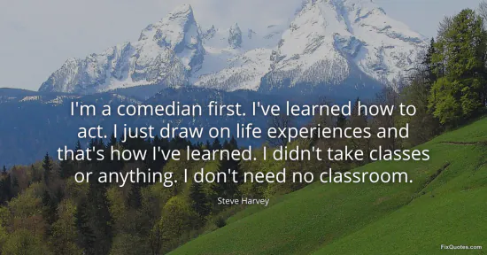 Harvey, Steve. "I'm a comedian first. I've learned how to act. I just draw on life experiences and that's how I've learned. I didn't take classes or anything. I don't need no classroom." FixQuotes. January 16, 2026. https://fixquotes.com/quotes/im-a-comedian-first-ive-learned-how-to-act-i-just-88290/.