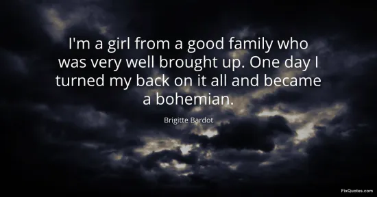 Bardot, Brigitte. "I'm a girl from a good family who was very well brought up. One day I turned my back on it all and became a bohemian." FixQuotes. January 15, 2026. https://fixquotes.com/quotes/im-a-girl-from-a-good-family-who-was-very-well-141556/.