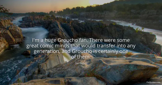 Rogan, Joe. "I'm a huge Groucho fan. There were some great comic minds that would transfer into any generation, and Groucho is certainly one of them." FixQuotes. January 17, 2026. https://fixquotes.com/quotes/im-a-huge-groucho-fan-there-were-some-great-comic-52086/.