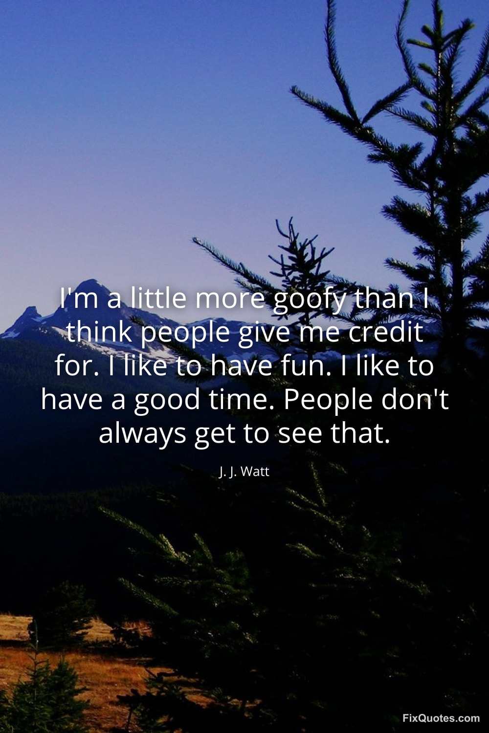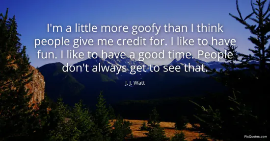Watt, J. J. "I'm a little more goofy than I think people give me credit for. I like to have fun. I like to have a good time. People don't always get to see that." FixQuotes. January 11, 2026. https://fixquotes.com/quotes/im-a-little-more-goofy-than-i-think-people-give-183865/.
