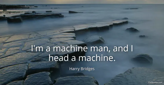 Bridges, Harry. (2026, January 15). I'm a machine man, and I head a machine. FixQuotes. https://fixquotes.com/quotes/im-a-machine-man-and-i-head-a-machine-161288/