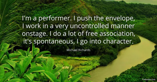 Richards, Michael. (2026, January 17). I'm a performer. I push the envelope, I work in a very uncontrolled manner onstage. I do a lot of free association, it's spontaneous, I go into character. FixQuotes. https://fixquotes.com/quotes/im-a-performer-i-push-the-envelope-i-work-in-a-64179/