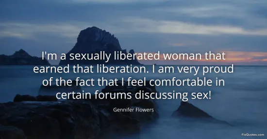Flowers, Gennifer. (2026, February 18). I'm a sexually liberated woman that earned that liberation. I am very proud of the fact that I feel comfortable in certain forums discussing sex! FixQuotes. https://fixquotes.com/quotes/im-a-sexually-liberated-woman-that-earned-that-66790/