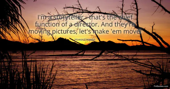 Hawks, Howard. (2026, January 15). I'm a storyteller - that's the chief function of a director. And they're moving pictures, let's make 'em move! FixQuotes. https://fixquotes.com/quotes/im-a-storyteller-thats-the-chief-function-of-a-163832/