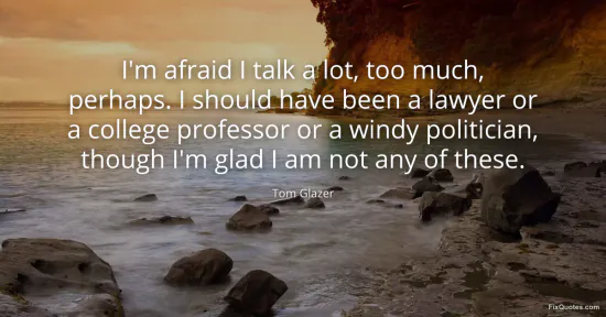 Glazer, Tom. (2026, January 16). I'm afraid I talk a lot, too much, perhaps. I should have been a lawyer or a college professor or a windy politician, though I'm glad I am not any of these. FixQuotes. https://fixquotes.com/quotes/im-afraid-i-talk-a-lot-too-much-perhaps-i-should-125954/
