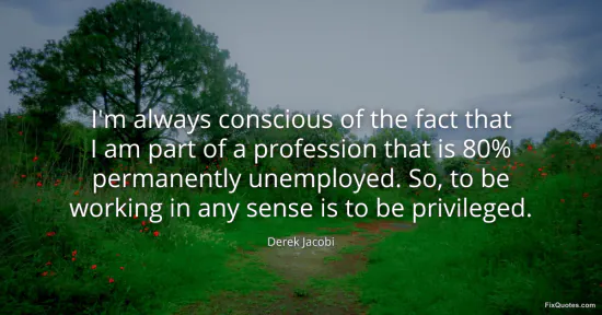 Jacobi, Derek. (2026, January 15). I'm always conscious of the fact that I am part of a profession that is 80% permanently unemployed. So, to be working in any sense is to be privileged. FixQuotes. https://fixquotes.com/quotes/im-always-conscious-of-the-fact-that-i-am-part-of-145357/