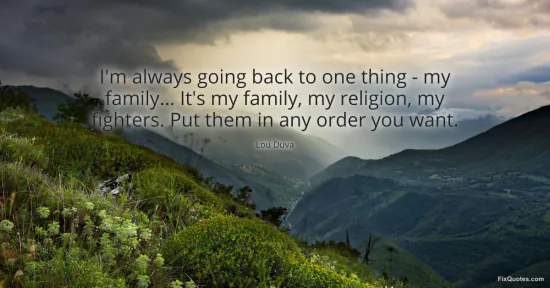 Duva, Lou. "I'm always going back to one thing - my family... It's my family, my religion, my fighters. Put them in any order you want." FixQuotes. January 16, 2026. https://fixquotes.com/quotes/im-always-going-back-to-one-thing-my-family-its-87294/.