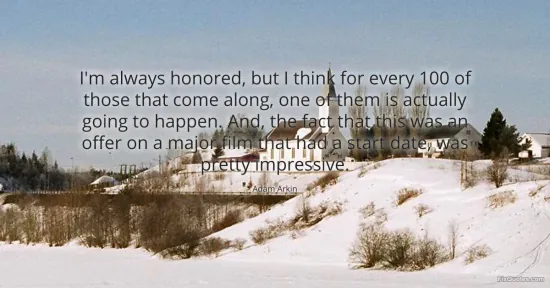 Arkin, Adam. (2026, January 17). I'm always honored, but I think for every 100 of those that come along, one of them is actually going to happen. And, the fact that this was an offer on a major film that had a start date, was pretty impressive. FixQuotes. https://fixquotes.com/quotes/im-always-honored-but-i-think-for-every-100-of-38501/