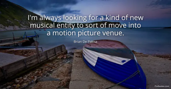 Palma, Brian De. "I'm always looking for a kind of new musical entity to sort of move into a motion picture venue." FixQuotes. January 17, 2026. https://fixquotes.com/quotes/im-always-looking-for-a-kind-of-new-musical-66620/.