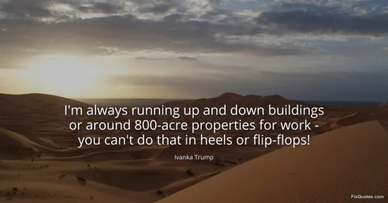 Trump, Ivanka. (2026, January 15). I'm always running up and down buildings or around 800-acre properties for work - you can't do that in heels or flip-flops! FixQuotes. https://fixquotes.com/quotes/im-always-running-up-and-down-buildings-or-around-173322/