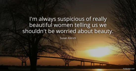 Estrich, Susan. "I'm always suspicious of really beautiful women telling us we shouldn't be worried about beauty." FixQuotes. January 15, 2026. https://fixquotes.com/quotes/im-always-suspicious-of-really-beautiful-women-159973/.