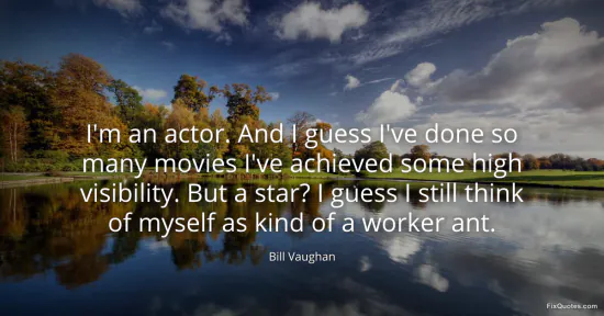 Vaughan, Bill. (2026, January 17). I'm an actor. And I guess I've done so many movies I've achieved some high visibility. But a star? I guess I still think of myself as kind of a worker ant. FixQuotes. https://fixquotes.com/quotes/im-an-actor-and-i-guess-ive-done-so-many-movies-39829/