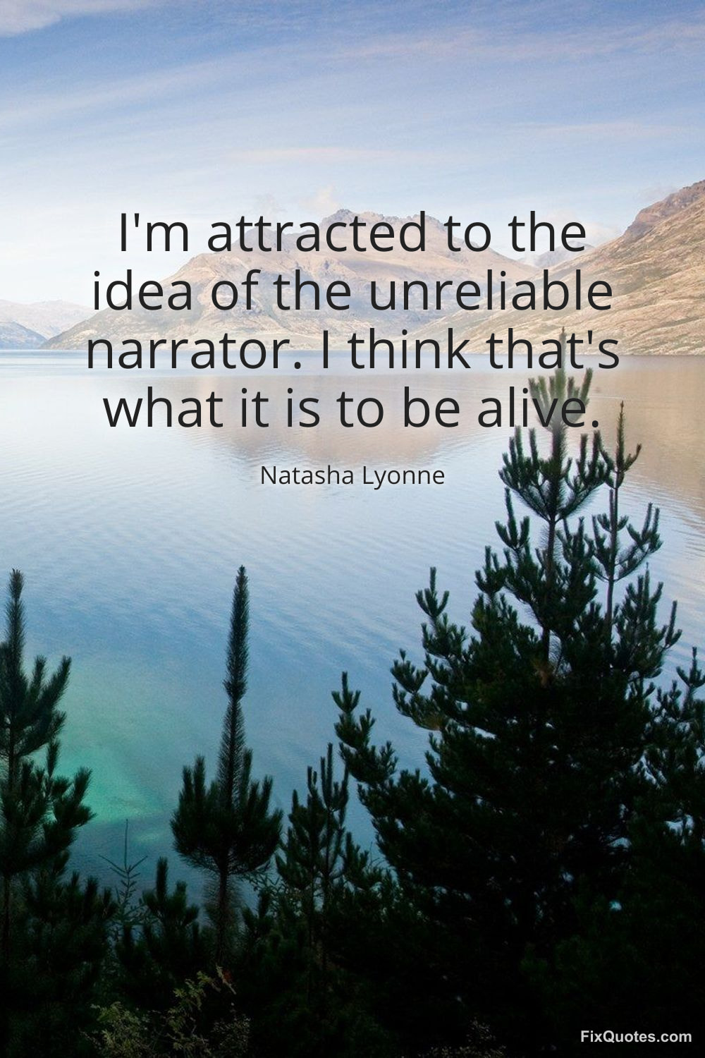 Lyonne, Natasha. "I'm attracted to the idea of the unreliable narrator. I think that's what it is to be alive." FixQuotes. January 25, 2026. https://fixquotes.com/quotes/im-attracted-to-the-idea-of-the-unreliable-184307/.