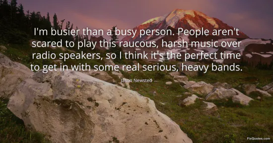 Newsted, Jason. (2026, January 16). I'm busier than a busy person. People aren't scared to play this raucous, harsh music over radio speakers, so I think it's the perfect time to get in with some real serious, heavy bands. FixQuotes. https://fixquotes.com/quotes/im-busier-than-a-busy-person-people-arent-scared-112286/
