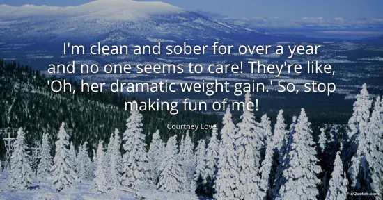 Love, Courtney. "I'm clean and sober for over a year and no one seems to care! They're like, 'Oh, her dramatic weight gain.' So, stop making fun of me!" FixQuotes. January 17, 2026. https://fixquotes.com/quotes/im-clean-and-sober-for-over-a-year-and-no-one-51065/.