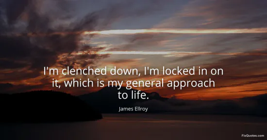 Ellroy, James. (2026, January 16). I'm clenched down, I'm locked in on it, which is my general approach to life. FixQuotes. https://fixquotes.com/quotes/im-clenched-down-im-locked-in-on-it-which-is-my-98610/