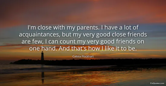 Flockhart, Calista. "I'm close with my parents. I have a lot of acquaintances, but my very good close friends are few, I can count my very good friends on one hand. And that's how I like it to be." FixQuotes. February 16, 2026. https://fixquotes.com/quotes/im-close-with-my-parents-i-have-a-lot-of-142310/.