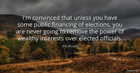 Murphy, Dick. "I'm convinced that unless you have some public financing of elections, you are never going to remove the power of wealthy interests over elected officials." FixQuotes. January 17, 2026. https://fixquotes.com/quotes/im-convinced-that-unless-you-have-some-public-66104/.