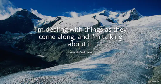 Williams, Lucinda. (2026, January 15). I'm dealing with things as they come along, and I'm talking about it. FixQuotes. https://fixquotes.com/quotes/im-dealing-with-things-as-they-come-along-and-im-150770/