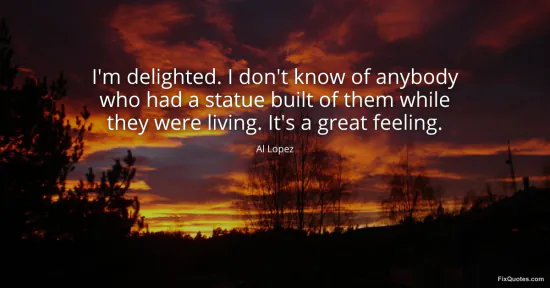 Lopez, Al. (2026, January 15). I'm delighted. I don't know of anybody who had a statue built of them while they were living. It's a great feeling. FixQuotes. https://fixquotes.com/quotes/im-delighted-i-dont-know-of-anybody-who-had-a-157632/