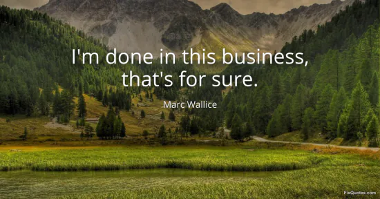 Wallice, Marc. "I'm done in this business, that's for sure." FixQuotes. January 16, 2026. https://fixquotes.com/quotes/im-done-in-this-business-thats-for-sure-93107/.