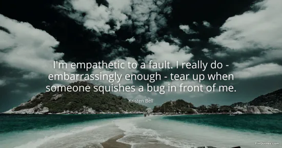 Bell, Kristen. (2026, January 17). I'm empathetic to a fault. I really do - embarrassingly enough - tear up when someone squishes a bug in front of me. FixQuotes. https://fixquotes.com/quotes/im-empathetic-to-a-fault-i-really-do-80968/