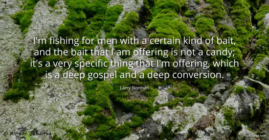 Norman, Larry. "I'm fishing for men with a certain kind of bait, and the bait that I am offering is not a candy; it's a very specific thing that I'm offering, which is a deep gospel and a deep conversion." FixQuotes. January 16, 2026. https://fixquotes.com/quotes/im-fishing-for-men-with-a-certain-kind-of-bait-84462/.