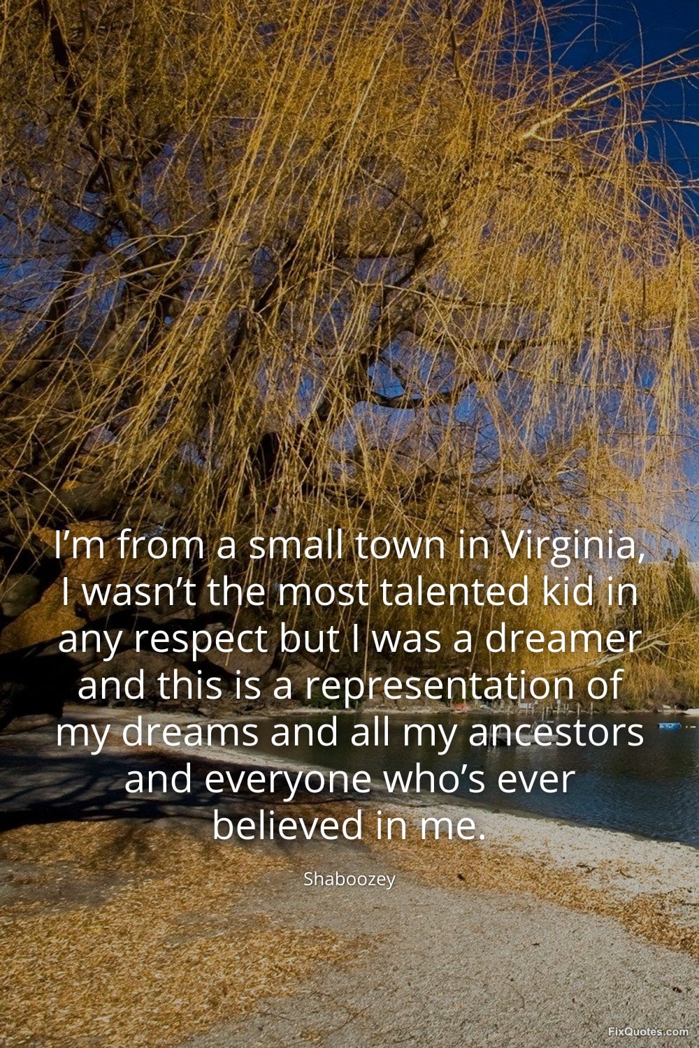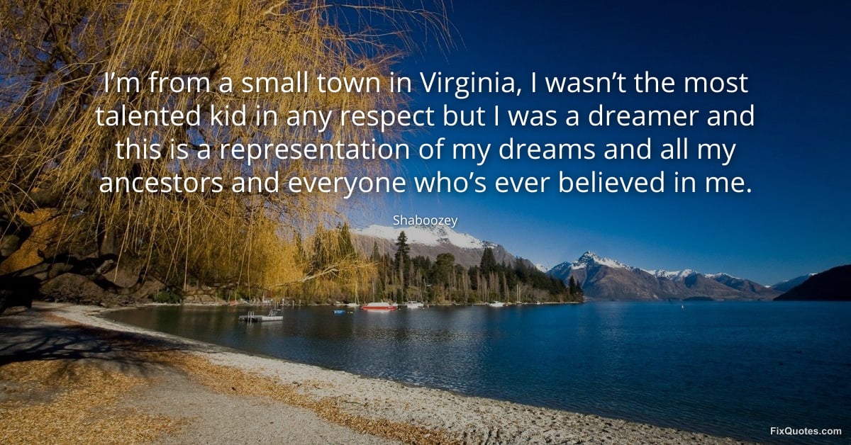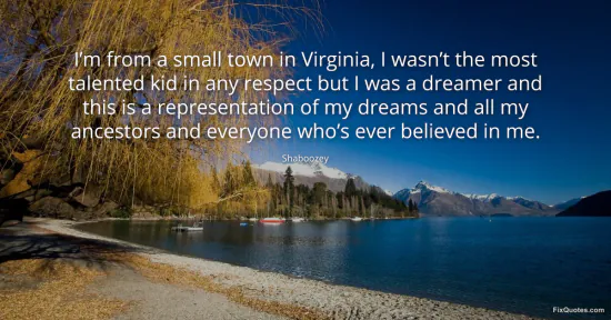 Shaboozey. "I’m from a small town in Virginia, I wasn’t the most talented kid in any respect but I was a dreamer and this is a representation of my dreams and all my ancestors and everyone who’s ever believed in me." FixQuotes. March 20, 2026. https://fixquotes.com/quotes/im-from-a-small-town-in-virginia-i-wasnt-the-most-186185/.