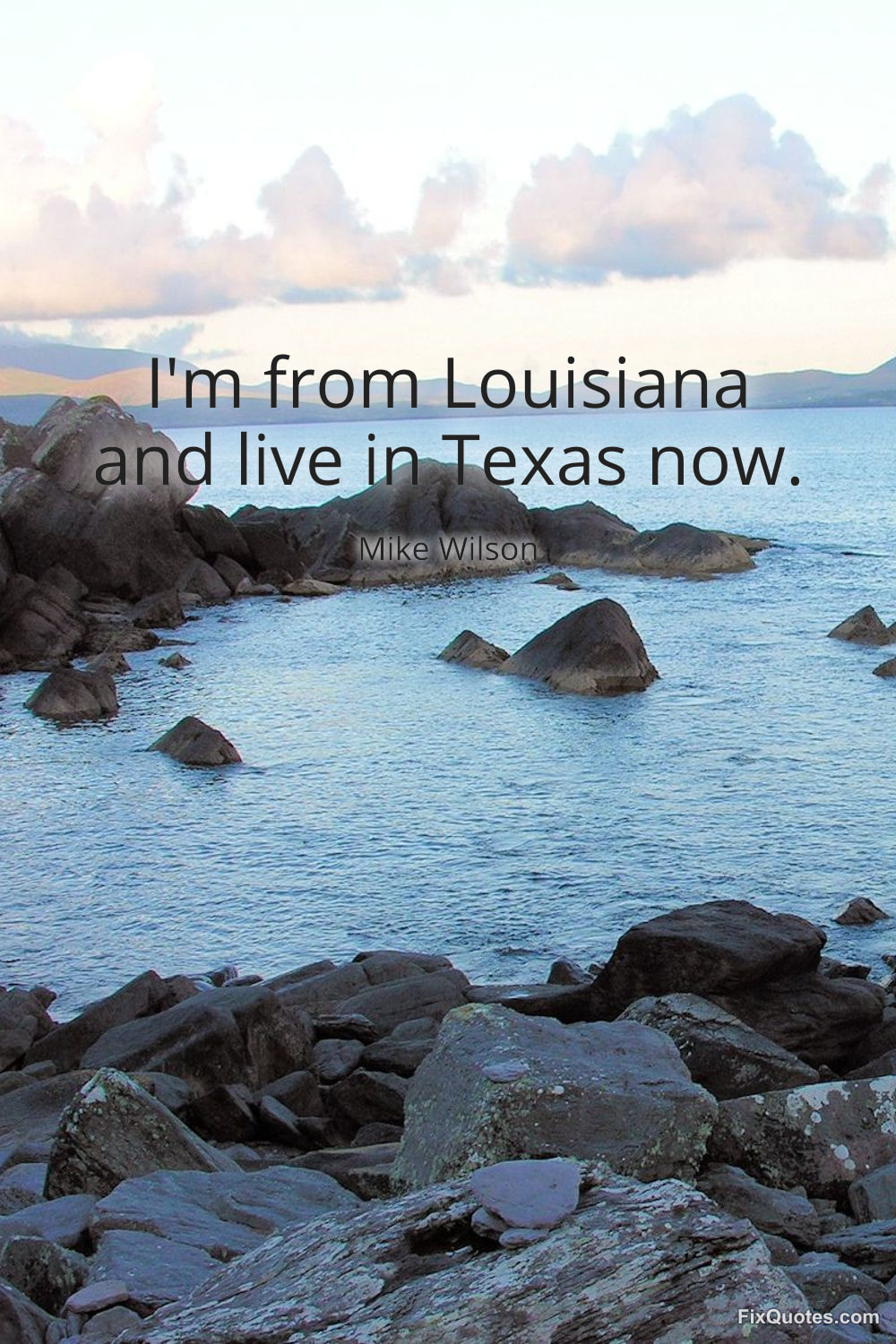 Wilson, Mike. (2026, January 16). I'm from Louisiana and live in Texas now. FixQuotes. https://fixquotes.com/quotes/im-from-louisiana-and-live-in-texas-now-115775/