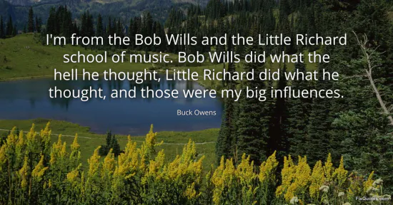 Owens, Buck. "I'm from the Bob Wills and the Little Richard school of music. Bob Wills did what the hell he thought, Little Richard did what he thought, and those were my big influences." FixQuotes. January 17, 2026. https://fixquotes.com/quotes/im-from-the-bob-wills-and-the-little-richard-42311/.