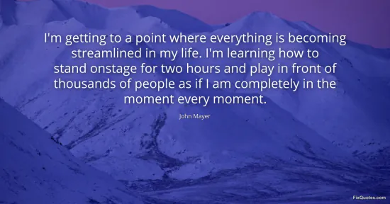 Mayer, John. (2026, January 16). I'm getting to a point where everything is becoming streamlined in my life. I'm learning how to stand onstage for two hours and play in front of thousands of people as if I am completely in the moment every moment. FixQuotes. https://fixquotes.com/quotes/im-getting-to-a-point-where-everything-is-126438/