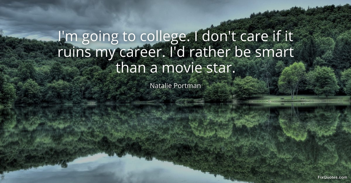 Portman, Natalie. (2026, January 15). I'm going to college. I don't care if it ruins my career. I'd rather be smart than a movie star. FixQuotes. https://fixquotes.com/quotes/im-going-to-college-i-dont-care-if-it-ruins-my-89376/