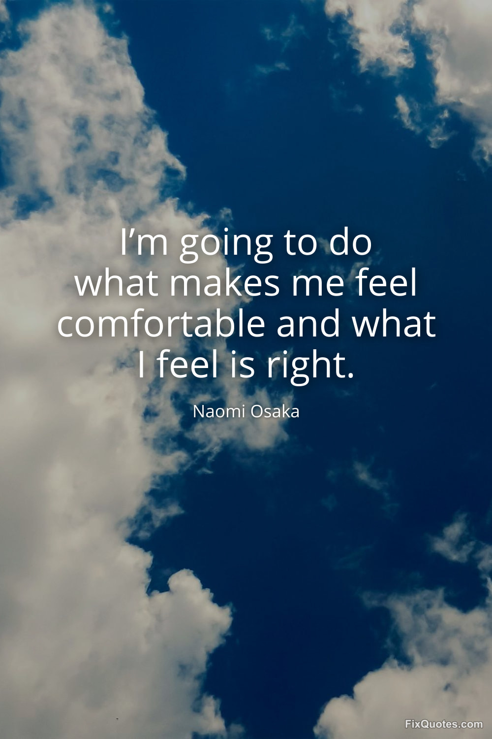 Osaka, Naomi. (2026, January 26). I’m going to do what makes me feel comfortable and what I feel is right. FixQuotes. https://fixquotes.com/quotes/im-going-to-do-what-makes-me-feel-comfortable-and-184416/
