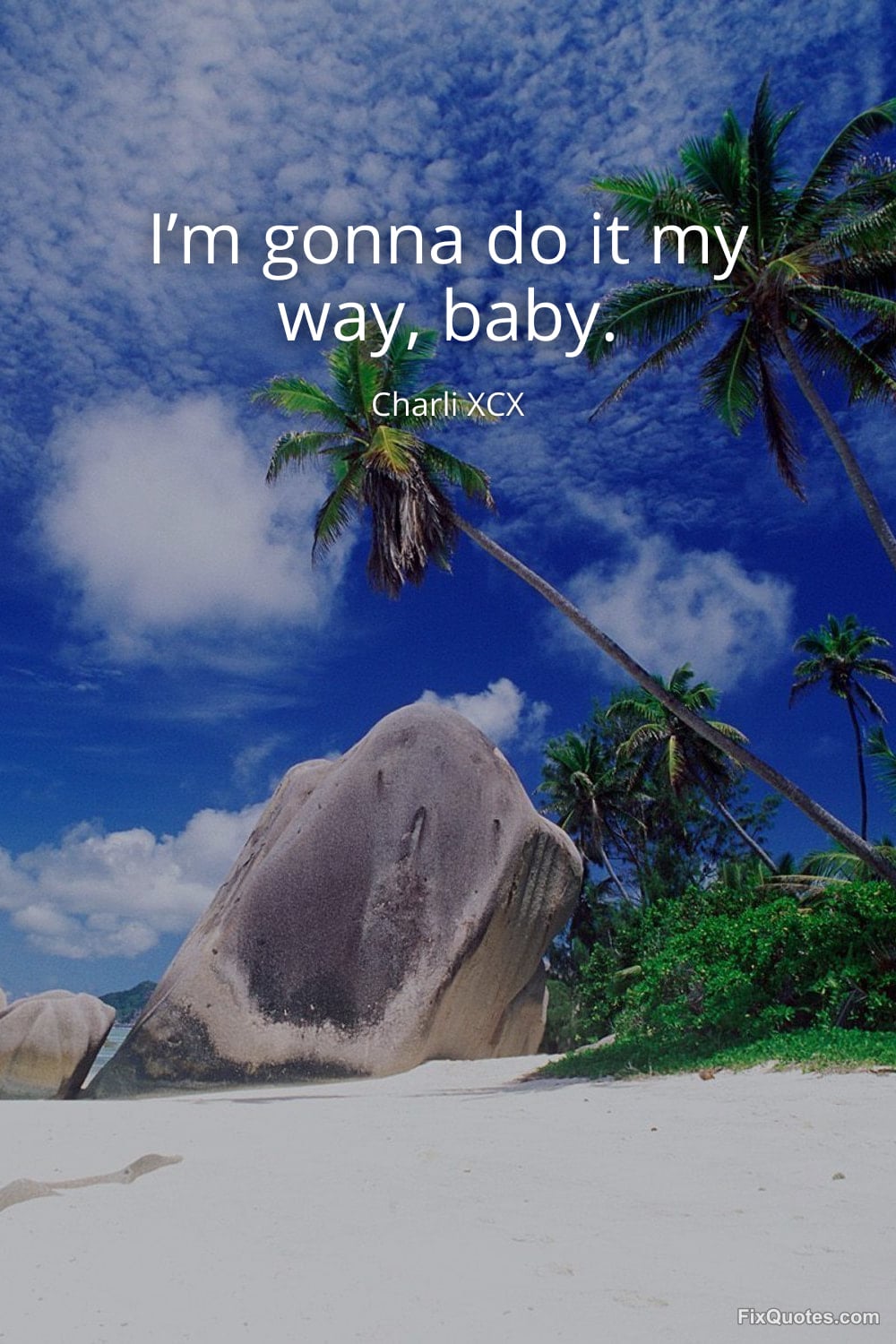 XCX, Charli. "I’m gonna do it my way, baby." FixQuotes. January 25, 2026. https://fixquotes.com/quotes/im-gonna-do-it-my-way-baby-184201/.