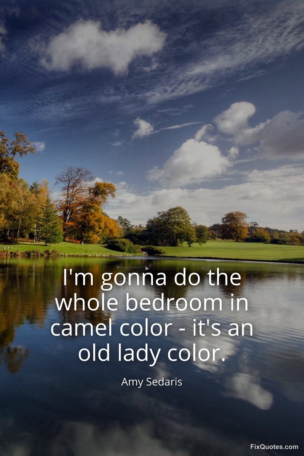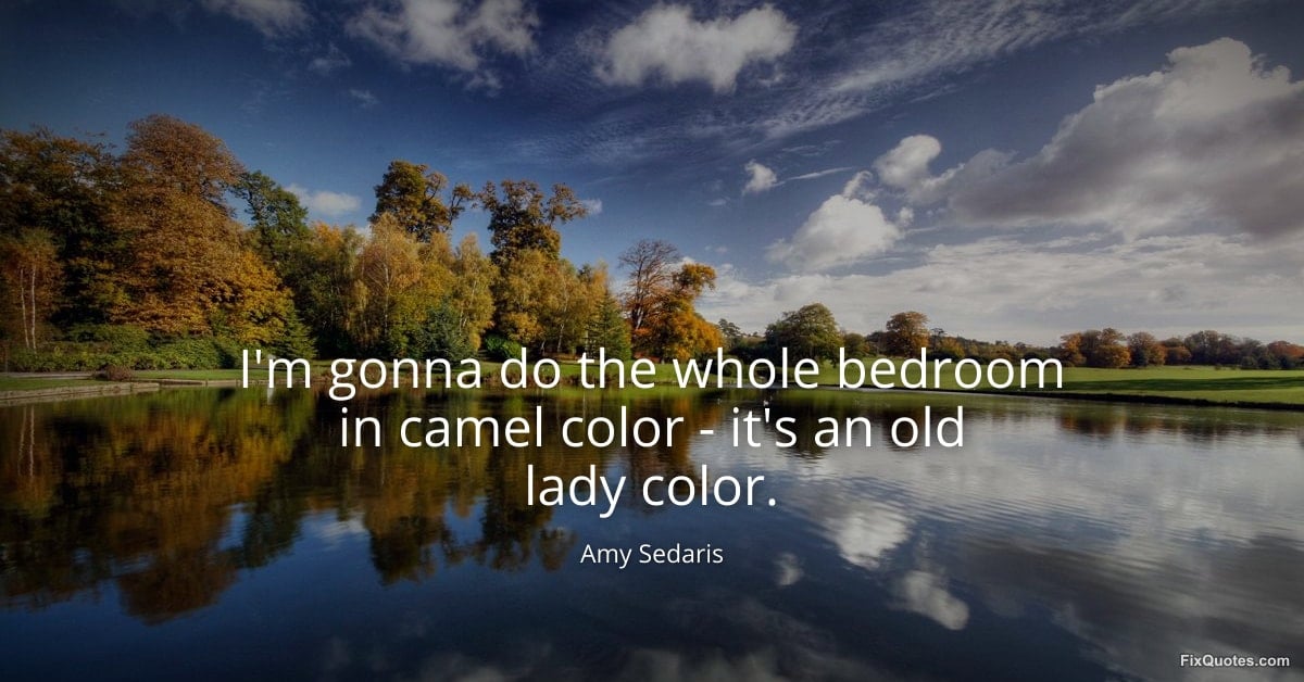 Sedaris, Amy. (2026, January 17). I'm gonna do the whole bedroom in camel color - it's an old lady color. FixQuotes. https://fixquotes.com/quotes/im-gonna-do-the-whole-bedroom-in-camel-color-36710/