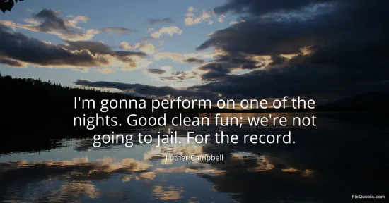 Campbell, Luther. (2026, January 16). I'm gonna perform on one of the nights. Good clean fun; we're not going to jail. For the record. FixQuotes. https://fixquotes.com/quotes/im-gonna-perform-on-one-of-the-nights-good-clean-135717/