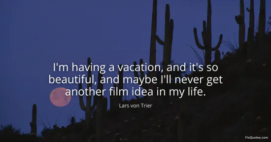 Trier, Lars von. "I'm having a vacation, and it's so beautiful, and maybe I'll never get another film idea in my life." FixQuotes. January 16, 2026. https://fixquotes.com/quotes/im-having-a-vacation-and-its-so-beautiful-and-120419/.