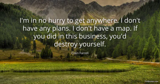 Farrell, Colin. (2026, January 15). I'm in no hurry to get anywhere. I don't have any plans. I don't have a map. If you did in this business, you'd destroy yourself. FixQuotes. https://fixquotes.com/quotes/im-in-no-hurry-to-get-anywhere-i-dont-have-any-139800/