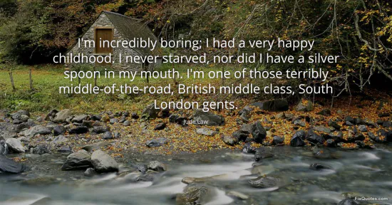 Law, Jude. (2026, January 15). I'm incredibly boring; I had a very happy childhood. I never starved, nor did I have a silver spoon in my mouth. I'm one of those terribly middle-of-the-road, British middle class, South London gents. FixQuotes. https://fixquotes.com/quotes/im-incredibly-boring-i-had-a-very-happy-childhood-150529/